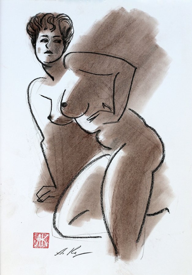 Лиза. 2026. Бум., сепия, пигмент